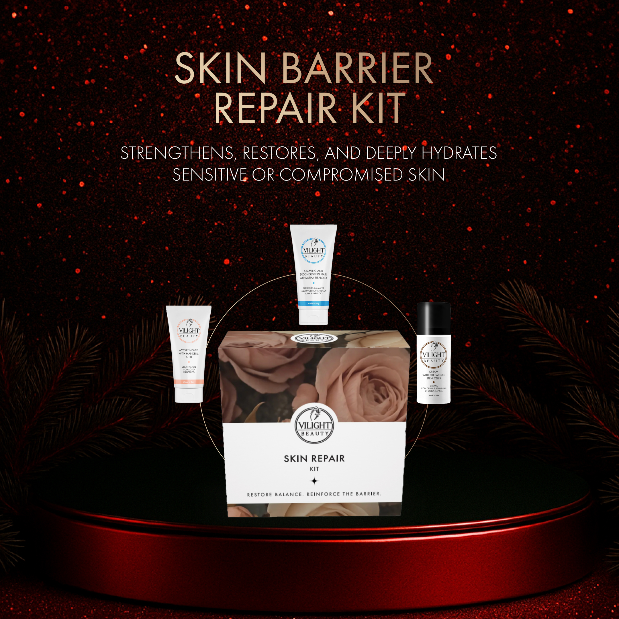 The Skin Barrier Repair Kit is created for sensitive, dehydrated, or stressed skin that needs support and restoration. It replenishes moisture levels, reduces irritation, and strengthens the protective barrier.